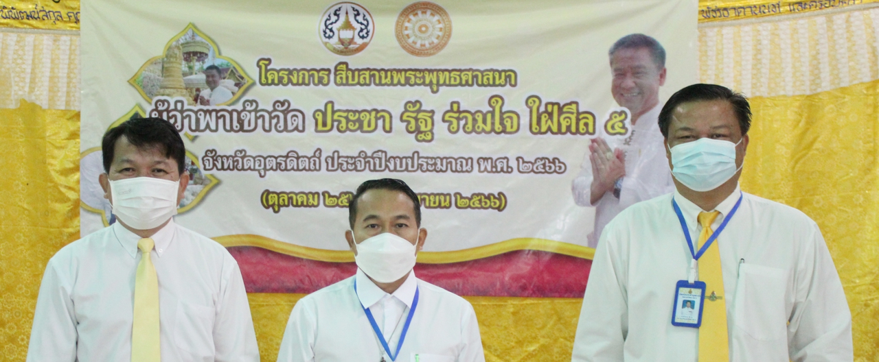 วันอังคารที่ 8 พฤศจิกายน พ.ศ. 2565 เวลา 06.30 น. ดร.วัฒนชัย ถิรศิลาเวทย์ ผู้อำนวยการสำนักงานเขตพื้นที่การศึกษาประถมศึกษาอุตรดิตถ์ เขต 2 พร้อมด้วย นายสัญญา กุลสุวรรณ์ นายอำนวย สีนาค รองผู้อำนวยการสำนักงานเขตพื้นที่การศึกษาประถมศึกษาอุตรดิตถ์ เขต 2 ผู้อำนวยการกลุ่ม ผู้อำนวยการโรงเรียน บุคลากรในสังกัด และนักเรียนเข้าร่วมกิจกรรม “ผู้ว่าพาเข้าวัด ประชารัฐร่วมใจ ใฝ่รักษาศีล 5” จังหวัดอุตรดิตถ์ ประจำปีงบประมาณ พ.ศ. 2566 โดยนายสมหวัง...
