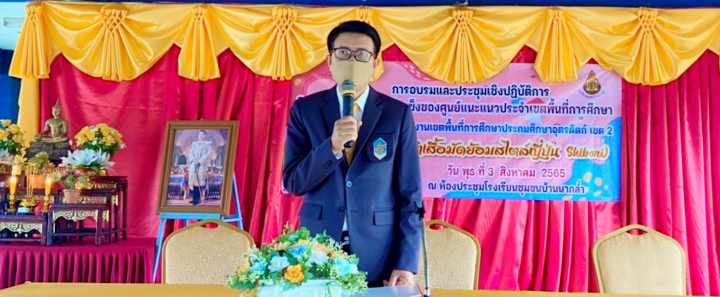 วันที่ 3 สิงหาคม 2565 เวลา 09.30 น. นายประเจน ปาประลิต ผู้อำนวยการสำนักงานเขตพื้นที่การศึกษาประถมศึกษาอุตรดิตถ์ เขต 2 มอบหมายให้ นายธีระศักดิ์ พลนาคู รองผู้อำนวยการสำนักงานเขตพื้นที่การศึกษาประถมศึกษาอุตรดิตถ์ เขต 2 เป็นประธานเปิดโครงการอบรมและประชุมเชิงปฏิบัติการ การสร้างเครือข่ายกับกิจกรรม เสื้อมัดย้อมสไตล์ญี่ปุ่นกับศูนย์แนะแนวประจำเขตพื้นที่การศึกษา พร้อมด้วย ผู้อำนวยการโรงเรียน และคณะครู ร่วมกิจกรรม ณ โรงเรียนชุมชนบ้านนากล่ำ...